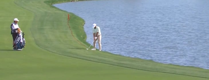 Auf der 8 droht es dann erstmals unangenehm zu werden, denn nach verzogenem Drive erreicht er erst mit dem dritten Schlag das Grün. Auf den 14. Schläger kann er sich aber zum Glück voll verlassen, kratzt ihm dieser doch aus rund zehn Metern noch ein weiteres Par auf die Scorecard. Das geht sich schließlich auf der 9 aber nach versandetem Approach nicht mehr aus, was ihn nur bei Level Par und mit etwas Rückstand auf die erwartete Cutmarke auf die Backnine abbiegen lässt. Dort bekommt er dann gleich wieder Sand ins Getriebe und driftet so sogar in den Plusbereich ab, womit das rettende Cut-Ufer langsam aber sicher in unangenehme Ferne rückt.