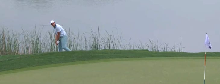 Sofort macht das deutsch-amerikanische Duett auch dort weiter wo sie am Donnerstag aufgehört haben, denn Rosenmüller stopft sofort auf der 1 aus drei Metern den fälligen Birdieputt. Nachdem der Deutsche danach jedoch die Grünattacke wild verzieht und Peterson sogar droppen muss, erwischt es die beiden mit einem Doppelbogey wie aus dem Nichts ziemlich heftig. Immerhin rehabilitiert sich Rosenmüller danach am Par 3 mit einem fast Hole in One, womit das Tagesergebnis prompt wieder auf Even Par steht.