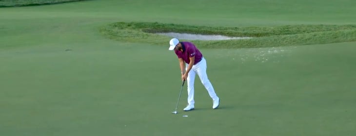 Nach zwei anfänglichen Pars streikt bei Stephan Jäger auf der 12 plötzlich der Putter und drückt ihm aus gerade mal gut vier Metern mit einem Driller den ersten Schlagverlust aufs Auge. Aus der Ruhe lässt er sich davon zwar nicht bringen, zwingende Birdiechancen kann er sich danach jedoch noch keine erarbeiten. Erst kurz vor dem Turn lässt dann das Par 5 der 18 nach sehenswerter Attacke den Ausgleich springen.