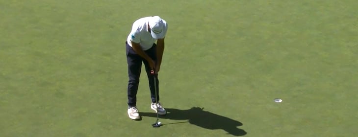 Der Start geht jedoch gleich gründlich daneben, denn nach einem wild verzogenen Drive muss er vom Tee sogar nachladen und startet so nur mit einem Par 5 Bogey in den Tag. Den anfänglichen wilden Ritt steckt er zwar gut weg und holt sich bereits auf der 3 aus fünf Metern auch das erste Birdie ab, nachdem jedoch danach am Par 3 der Tee Shot versandet, brummt er sich auch sofort das nächste Bogey auf. Immerhin kann er sich auch danach auf den Putter weiterhin verlassen, wie der erneute Ausgleich auf der 6 aus erneut fünf Metern beweist.