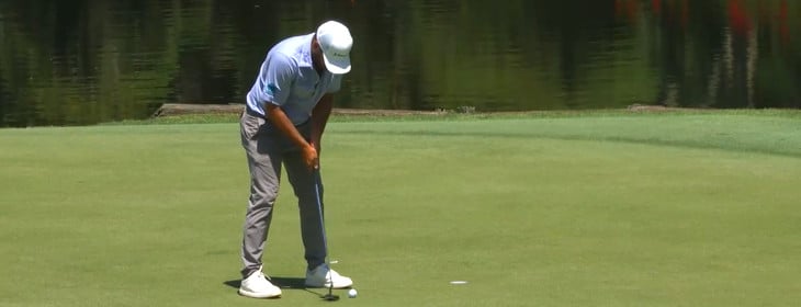 Auf der 12 muss er dann plötzlich etwas zaubern um nach eingebunkerter Annäherung ein Bogey noch zu vermeiden. Der Sand Save spornt den ehemaligen Houston Champion sichtlich auch noch zusätzlich an, denn auf der 13 locht er sogar von knapp außerhalb des Grüns zum nächsten Birdie und da er auch vom letzten Par 5 kurz danach einen Schlaggewinn eintütet, taucht er endgültig erstmals unter den Top 10 auf.