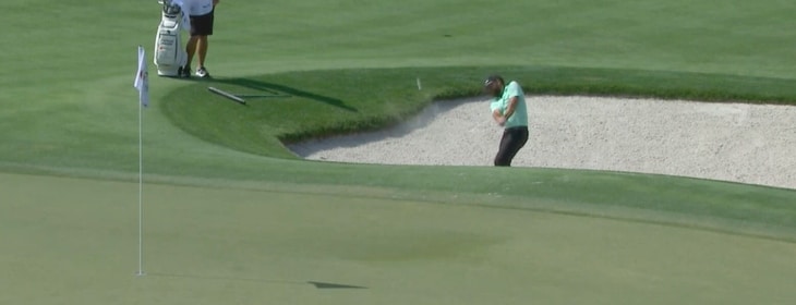 Nachdem jedoch auch die zweite lange Bahn nichts abwirft und er sich danach am Par 3 der 8 aus dem Grünbunker nicht mehr zum Par scramblen kann, hat er rasch den nächsten Fehler auf der Scorecard kleben. Des Schlechten nicht genug, biegt er nach den nächsten Ungenauigkeiten auf der 9 sogar nur bei 3 über Par auf die letzten neun Löcher ab.