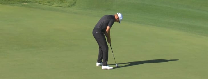 Gleich auf der 1 hat er den Putter dann hervorragend auf Temperatur und krallt sich aus knapp 13 Metern prompt ein anfängliches Birdie. nach kurzer Verschnaufpause, geht sich schließlichauf der 5 aus vier Metern bereits das nächste Erfolgserlebnis aus, womit er sich richtiggehend auf den Geschmack bringt. Absolut stressfrei tütet er am Par 5 der 7 dann bereits Birdie Nummer 3 ein und da er sich nach starkem Eisen danach am Par 3 regelrecht den Druck vom Putter nimmt und auch am Par 5 der 9 wieder zuschlägt, knackt er vor den letzten neun Löchern sogar bereits die Top 5.